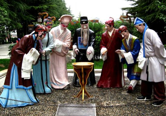 陜西特色小鎮(zhèn)無處不在的戲劇雕塑很好的突出"百戲之源"這四個字的涵義。